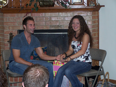 I could write a book about how much our love has grown since then, but I'll spare you. :-) Fast forward to May 2, 2009. My birthday was just a few days before and Zach's is May 4, so his family held a joint birthday party. I guess you'll have to talk to him to get his side of the story, but 20 of his family and our friends gathered that evening and I was the only one in the dark about the REAL reason for the party. Here is some of the decor, food and cake Zach's sweet mom Sharon set up for us.